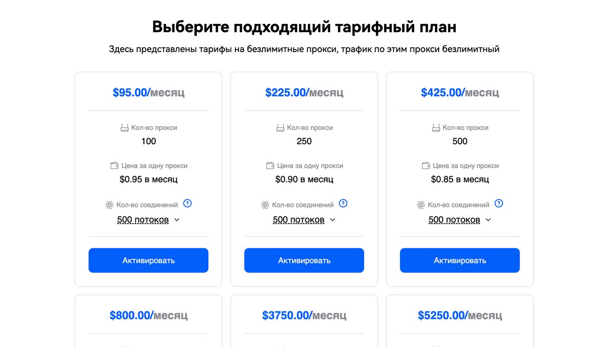 - Цены на прокси: 7/10 — Тарифы с оплатой за трафик конкурентны. Но $95 минимум за безлимитные пакеты — это дорого для старта. Малый бизнес и частники отсеются.