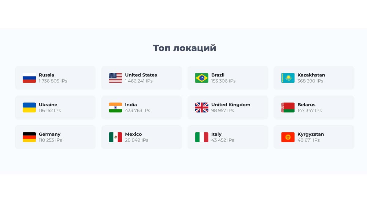 - Россия — максимальное количество IP