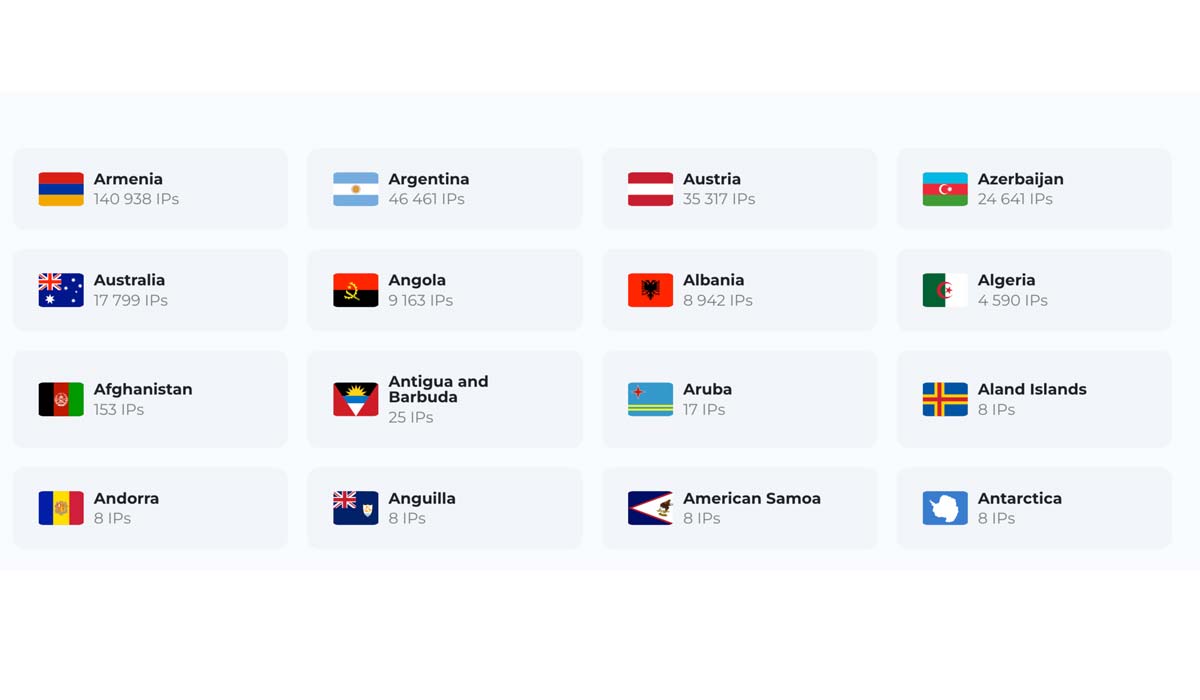 Asocks покрывает 150+ стран с неравномерным распределением IP: