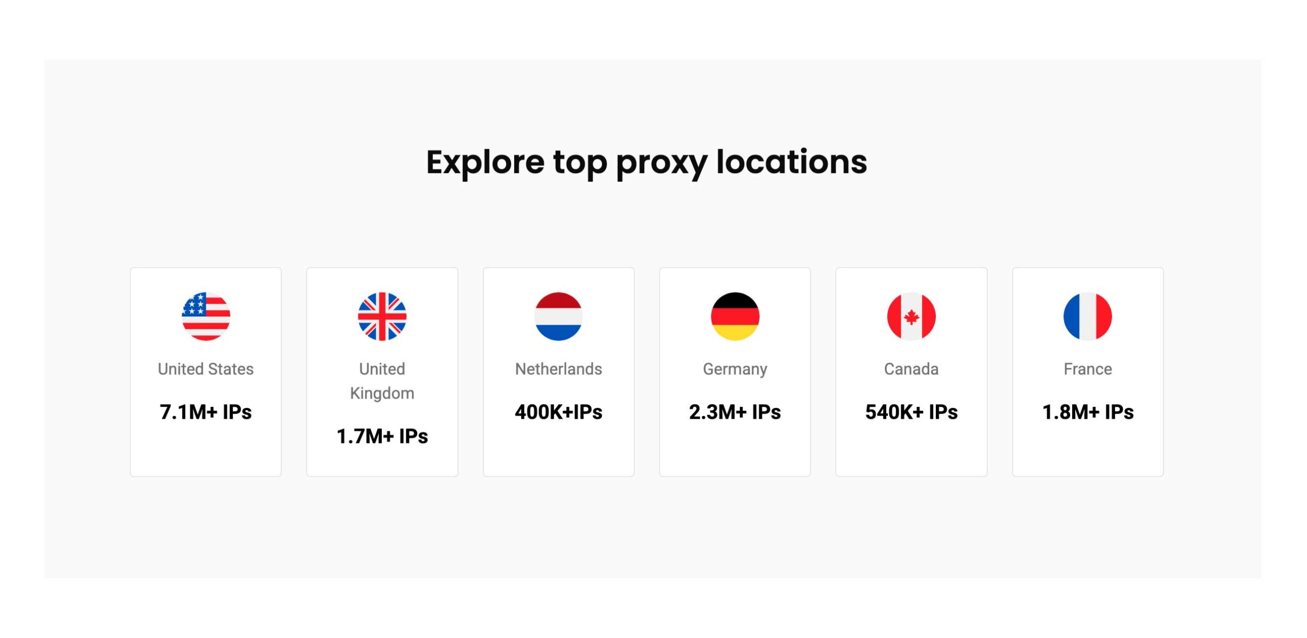 Сервис предоставляет IP-адреса в более чем 195 странах. Ключевые локации с наибольшим количеством доступных адресов включают: