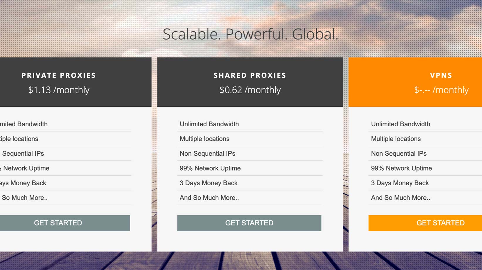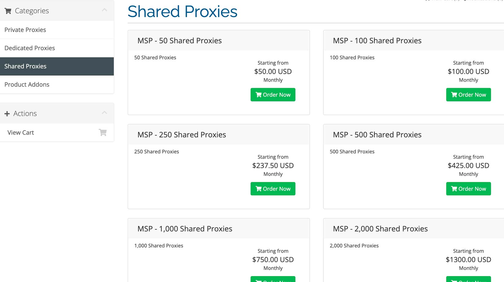 | Тарифные планы | Приватные от $2.49/IP/месяц, Shared от $50/месяц за 50 IP ($1/IP), Выделенные от $65/месяц в зависимости от типа |